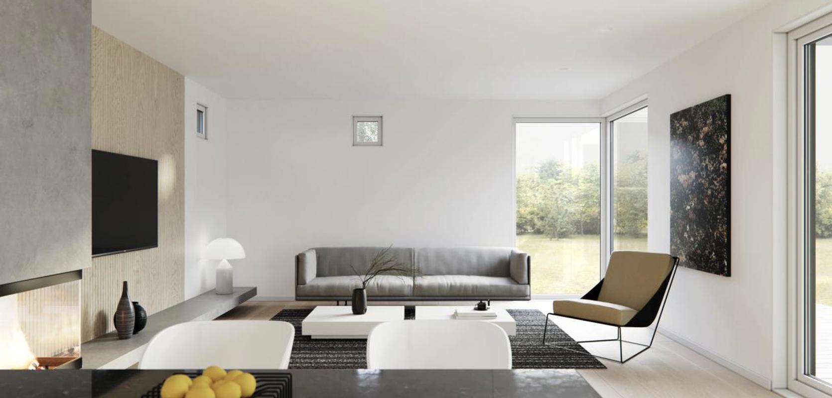 Lyngen er et moderne og tidløst hus med et hjerte plassert sentralt i husets kjerne, nemlig et atrium. Atriet er et fantastisk inne-ute rom som er overdekket og gir ly for vær og vind. Et perfekt rom å nyte lange sommerdager sammen med familie og venner.